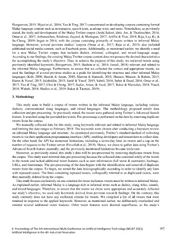 the informal Malay language. Furthermore, to ensure that we collected the correct and appropriate tweets, we