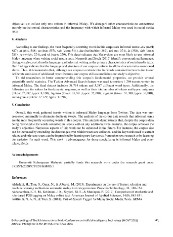 informal Malay. The final dataset includes 38,714 tokens and 5,387 different word types. Additionally, the